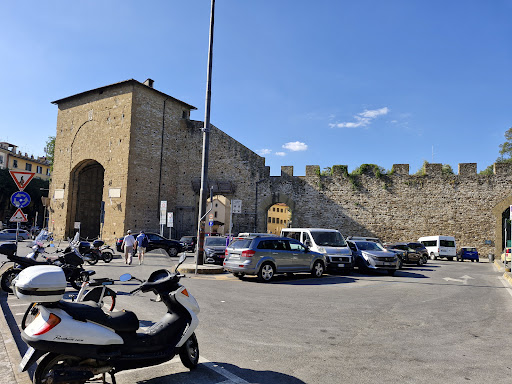 Read moreAbbiamo visitato la parte alta della porta tramite le visite guidate di musei fiorentini avendo prenotato on-line per questa visita abbiamo fatto accesso dal parcheggio sotto alle mura interno città e poi percorso un tratto sopra alle mura fino alla porta salendo una scalinata che accede direttamente al tetto della porta. La struttura è in evidente stato di invasione di piante, in alcuni punti sono presenti delle crepe dovute alle intemperie e alla vegetazione spontanea. l'interno della struttura specialmente il tetto è abbastanza degradato e ci sono alcuni buchi tra le tegole (foto). L'interno era in buono stato, sufficientemente ripulito ma normalmente molto polveroso. Tutte le aperture di finestra e altre grate erano protette da una rete metallica (foto). Il camminamento e la scalinata di accesso alla porta hanno i requisiti minimi per l'accesso solo se non bagnato. il costo della visita è stato di €6 a persona adulta e sotto i 12 anni l'ingresso è gratuito. è possibile attivare la card del Fiorentino per usufruire di altri accessi pagando circa €20 per la tessera valida in altri luoghi gestiti sempre da a musei fiorentini. la porta merita una visita per la sua particolarità architettonica in quanto largo è collegato su un angolo delle Mura cittadine oltretutto si può vedere una parte del camminamento sulle mura verso il giardino di Boboli. Dalla porta si può ammirare La piazza dove la nuova rotonda è stata impreziosita con una scultura d'arte moderna. Opera del 1984 di Michelangelo pistoletto intitolata "dietrofront" alta 6 m. Rappresenta la stessa donna che esce dalla città e poi rientra, la circolarità tra passato e futuro: “Tutto ciò che di moderno si è venuto a creare nasce da una spinta che parte dalla prospettiva rinascimentale, quindi da Firenze” -disse Pistoletto durante un’ intervista- “Questa mia figura monumentale, dunque, si spinge verso il mondo uscendo da Porta Romana. Essa esce da Firenze per incontrare il mondo e ritorna a Firenze, infatti una seconda figura, sorretta dalla prima, si proietta verso l’interno della città: è un ritorno, della modernità, verso Firenze dal...