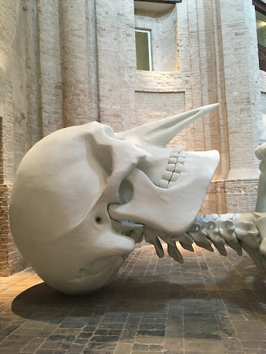 Read moreQuesta bizzarra e mastodontica opera (24 metri!) si chiama "Calamita cosmica" ed è una scultura di Gino De Dominicis, realizzata in segreto nel 1988 e conservata nella ex chiesa della Santissima Trinità in Annunziata a Foligno. 🔸 Rappresenta uno scheletro monumentale antropomorfo, con l'eccezione del becco di uccello che spicca al centro del viso in sostituzione del naso; è realizzata in vetroresina, ferro e polistirolo. 🔸 È stata esposta al MAC di Grenoble, al Museo di Capodimonte di Napoli, alla Mole Vanvitelliana di Ancona, in Piazzetta Duomo a Milano, alla Reggia di Versailles, al MAC'S Grand Hornu a Mons in Belgio e al MAXXI di Roma e a Firenze 🔸 Vuole rappresentare la relazione tra lo scheletro antropomorfo e il cosmo, che si attua attraverso l’asta dorata, segno di raccordo tra il tempo terreno e quello soprannaturale. Sono tutti temi cari a de Dominicis: la riflessione sulla morte e sulla vita, la connessione tra il cielo e la terra,...