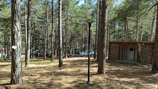 İçinde çam ağaçları arasında kamelyalar var ve bazı kamelyalar ortası boş ve kenarlarında oturma kısımları varken bazı kamelyalarda ortada masa yanlarda oturma alanı olan daha küçük kamelyalarda var.