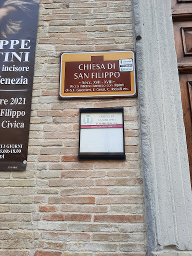 La Chiesa di San Filippo, uno splendido esempio di architettura barocca, fu eretta tra il 1608 e il 1613 come ex-voto dei forsempronesi per la nascita di Federico Ubaldo della Rovere, ultimo erede dei Duchi di Urbino. Pochi anni dopo la sua costruzione, venne consegnata ai Padri Filippini della Congregazione dell'Oratorio che, nel tempo, la ampliarono ed arricchirono con un'esuberante decorazione in stucco, in parte riferita al plasticatore Tommaso Amantini da Urbania. Per questa chiesa Francesco Guerrieri (1589-1657) venne incaricato dalla Comunità di Fossombrone di eseguire la grande pala d'altare, dove i Cinque Santi Martiri di Fossombrone - Aquilino, Gemino, Gelasio, Magno e Donato - mostrano il modello della chiesa nella sua prima forma alla Vergine Maria attorniata dai Santi.
