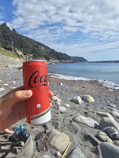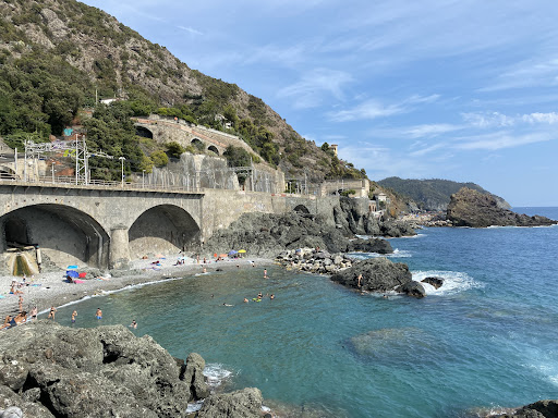 Read moreQuesta spiaggia è molto sottovalutata, perché sebbene sia in una zona un po' difficile da raggiungere (che forse è un bene per chi cerca un posto tranquillo) ha un mare molto limpido. Gli scogli permettono di bloccare le forti correnti e nel piccolo bacino l'acqua è piuttosto calma. A volte ci sono le alghe, dipende dalle mareggiate, ma credo sia l'ultimo problema. Assolutamente portatevi le scarpe di gomma perché non c'è sabbia ma solamente pietre e sassolini. Meglio raggiungerla in treno per evitare il prezzo esorbitante...