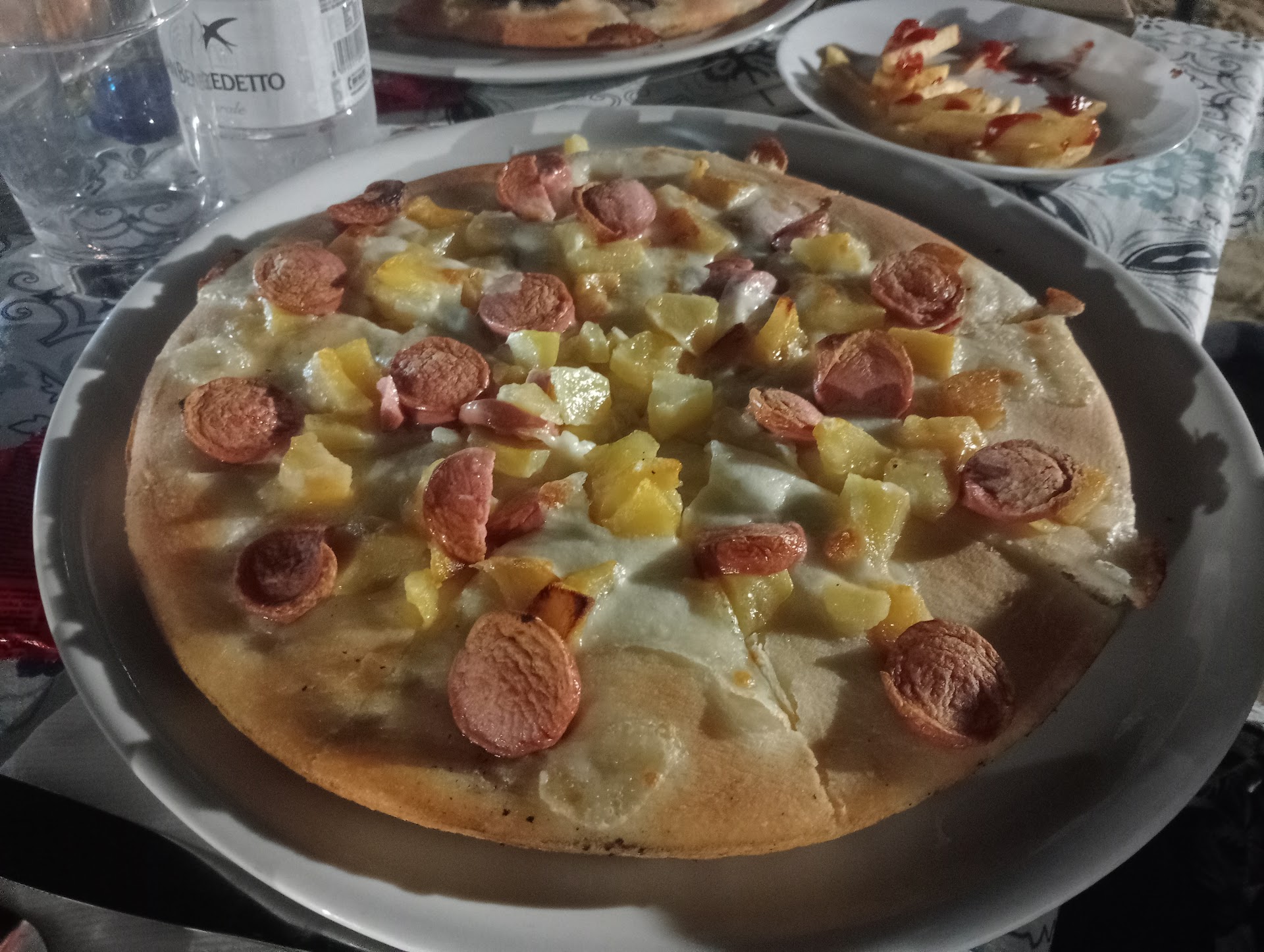 La pizza e la frittura purtroppo non risollevano il livello. La pizza con un impasto industriale precotto, con una farcitura che arriva poco cotta, la rimandiamo indietro. Anche all’estero raramente ho visto qualcosa del genere. La frittura si presenta pallida, con un gambero solitario accanto a qualche anello di calamaro poco definito. Niente seppie, niente alici. Difficile chiamarlo “fritto misto”. Anche questo fa ritorno in cucina.