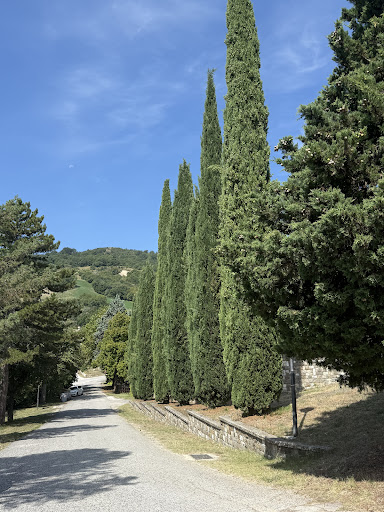 Read moreUn bel convento immerso nel verde e nel silenzio in puro stile francescano ubicato su un poggio suggestivo. La struttura risale per tradizione al suo fondatore San Francesco (1213) e nel corso del tempo ha subito diversi interventi di modifica. Già dal parcheggio antistante si può ammirare la bella facciata a doppio loggiato. Internamente la chiesa a navata unica è essenziale proponendo alcune opere sui lati e un affresco parzialmente recuperato con Sant'Antonio Abate. Nel presbiterio un bel coro in legno scuro dalle semplici finiture sempre in stile francescano. Bella la balconata in legno dipinto un po' trasandato che racchiude l'organo seicentesco. Sulla destra la cappella dei Conti Oliva risalente al 1484 con due interessanti sarcofagi laterali finemente scolpiti, due inginocchiatoi intarsiati e un altare con una bella pala in legno del padre di Raffaello rappresentante la Madonna con Bambino. Ben conservato anche l'attiguo chiostro recentemente vetrato con due pozzi al centro. Interessante un portone in legno del chiostro risalente ai secoli scorsi con porticina, grandi cerniere con borchie, travi interne di chiusura incastrate nel muro, cunei di bloccaggio, serrature a grandi chiavi, un pezzo originale ormai...