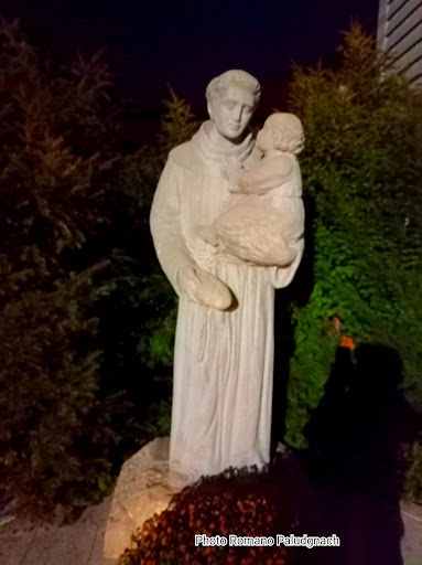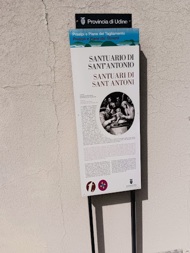 Read moreCi troviamo qui, a Gemona del Friuli, presso la più antica Chiesa dedicata a Sant'Antonio al Mondo. Quasi completamente distrutta con il Terribile Terremoto del 1976, fu poi ricostruita in stile moderno ed oggi troviamo un Santuario di Sant'Antonio, molto ampio. Al suo interno cmq troviamo i ruderi, sassi antichi relativi alla Cappella voluta proprio da Sant'Antonio da Padova, in onore della B. Vergine Maria, quando lui stesso, nel 1227, anno in cui si fermò qui a Gemona del Friuli per alcuni mesi, lasciando nella popolazione Gemonese e di tutti il Friuli un segno molto forte anche compiendo molti miracoli. Sono i frati Minori infatti a prendersi cura già dal 1227 della Chiesa, e, sono rimasti sul luogo nelle Tende e nelle case prefabbricate a pregare in seguito al terremoto del 1976 per poi rientrare nel Santuario una volta costruito. Davanti al Santuario la statua di Sant'Antonio, ed un pannello che ne ricorda la storia.