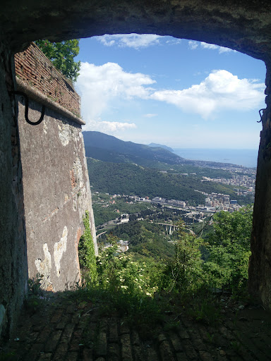 Read moreA mio parere il più bello dei forti che contornano le alture di Genova. Facilmente raggiungibile sia posteggiando subito dopo l'osteria da Richetto se si viene da sud da Forte Castellaccio sia posteggiando dal "Cancello dell'avvocato" se si proviene da Forte Begato. Con la moto o la bici è possibile arrivare direttamente sotto le mura. Un facile accesso è possibile dalla piazzola che si trova proseguendo in alto a destra dall'ingresso principale Sud. Il forte dispone di ben 2 cinte murarie e gli ambienti interni sono sostanzialmente costituiti da ampie camerate con soffitti a volta. Dalle mura si gode una vista mozzafiato a 360°. Proseguendo di circa 1km verso Nord raggiungerete molto facilmente anche il forte Puin, reso comodo grazie ad una strada in ghiaietta, allargata in seguito alle opere di rivalutazione che prevedono di collegare entro la fine del 2024 tutti i forti di Genova del lato occidentale da Nord a Sud: forte Diamante, forte Fratello Maggiore, forte Fratello Minore, forte Puin, forte Sperone e forte Begato. Consigliato portarsi da bere, purtroppo non troverete acqua potabile, spero che i lavori di ristrutturazione prevedano fontanelle, aree di riposo e aree picnic usufruibili dai cittadini, magari sfruttando le funicolari Zecca-Righi e Principe-Granarolo o la futura funivia del Lagaccio. I Forti meritano di essere spazio vissuto dai cittadini come fu per l'area Expò alla fine...