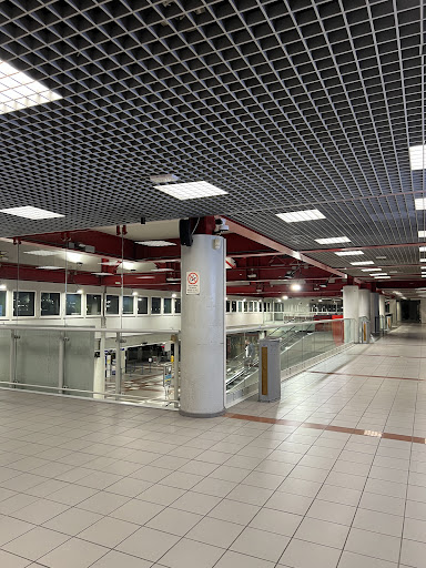 Read moreSe arrivi in anticipo all'imbarco e ti vedi sul piazzale per un'ora a 40 gradi ringrazi la Madonna che ci sia questo posto....poi entri e ti accorgi che il corridoio e la piazzetta su cui si affacciano i negozi è sotto una copertura in vetro che rende il tutto una specie di serra. Ti muovi in una atmosfera che è un mix di cibo e sudore che ti sembra di essere nel retro di una mensa lercia di un carcere di qualche paese torrido e lercio, ogni cosa che tocchi è lercia e appiccicosa....pure i giochi per bambini strategicamente disposti nel punto più caldo....i bagni non ho avuto il coraggio! Unica nota positiva un negozio di libri (Punto qualcosa....) e la COOP. Il McDonald, a parte il personale che fa onestamente il suo, ti si attacca letteralmente addosso: pavimenti sedie tavolini lerci. Imbarazzanti gli sguardi dei molti stranieri che si muovono all'interno forse rimpiangendo di aver scelto il nostro Paese...