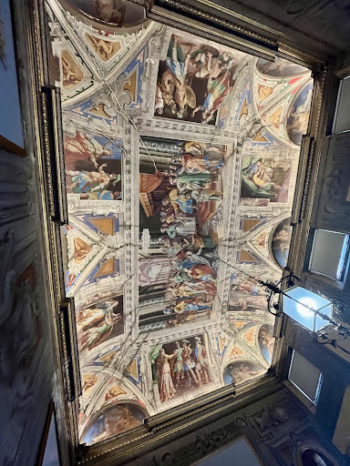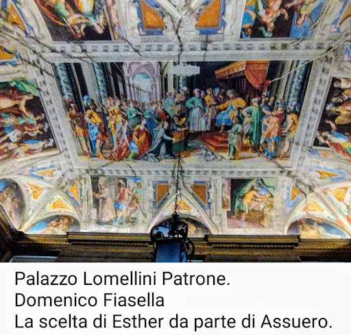 Nel dettaglio: La caduta di Gerusalemme (volta dell'atrio) Il banchetto di Assuero (primo piano nobile) La scelta di Esther da parte di Assuero (secondo piano nobile)