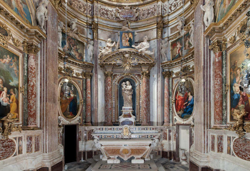 In the 17th century, the church's interior was redesigned in the Baroque style, including by Daniele Casella. Baroque elements, a dome, new columns, and decorations were added.