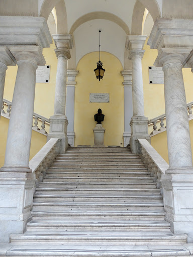 Questo edificio è stato il primo Istituto Universitario della Repubblica, e presenta degli scaloni monumentali. Scaloni che permettono al palazzo di "arrampicarsi" sulla collina retrostante, con un evidente intento scenografico per esaltare, verso l'alto, lo splendore barocco del palazzo.