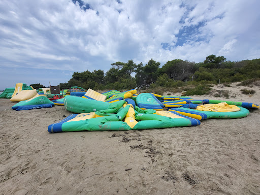 Molto divertente, abbiamo acquistato in loco i biglietti durata un' ora 10€ cad e i bambini (10 e 8 anni) si sono cimentati in tutti i percorsi, incluso lo scivolo piuttosto altino che finisce in mare. C' è anche una parte più facile e più a riva per i bimbi piccoli. Dove si trovano i gonfiabili grandi l' acqua è alta e si raggiungono a nuoto muniti di salvagente che viene fornito con il biglietto d'ingresso. Sapendo nuotare sono rimasta in acqua nei pressi della struttura x controllare la situazione. L' ingresso non è riservato ai bambini, possono salire anche i genitori muniti di salvagente (che attesta il pagamento del biglietto), ma se i bimbi sono autonomi e sanno nuotare non è assolutamente necessaria la presenza, tra l'altro sono presenti due bagnini sui gonfiabili. Consiglio di non arrivare oltre le 18 perché il parco chiude alle 19 ma l' ultimo gruppo parte alle 18.15 (col biglietto...