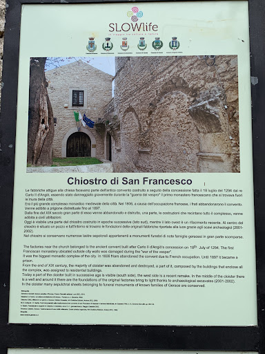 Read moreL'altare barocco marmoreo (monumento nazionale) è di una tecnica così raffinata da sembrare dipinto. Si notano infatti ritratti della città antica, di chiese e di monasteri, accanto a decorazioni naturali di fiori e uccelli. Molto particolari l'arco a tutto sesto e la rosa gotica all'interno, che è comunque spoglio (stile francescano). Le finestre sono in stile gotico-meridionale. C'è anche il sarcofago di Pietro Ruffo di Calabria, ricordato inoltre dalla targa affissa da un suo discendente. Il portale gotico ha elementi arabeggianti. Il chiostro è in...