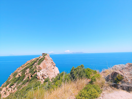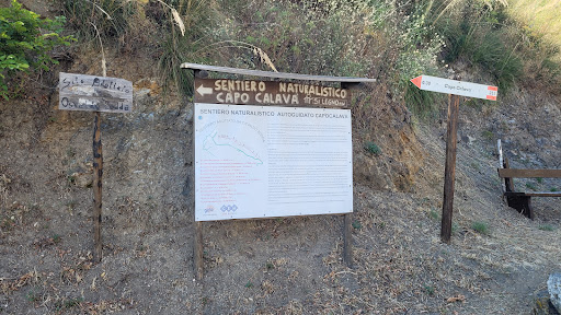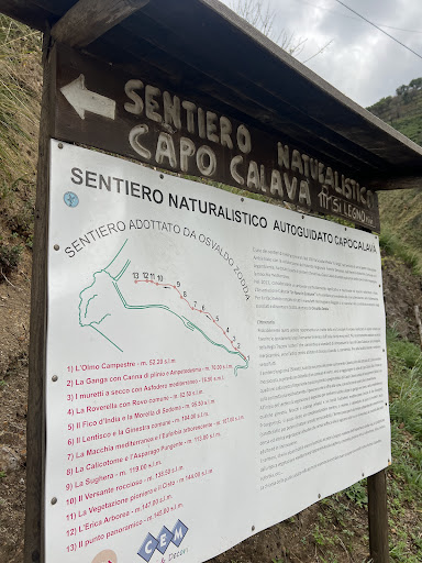 Bel sentiero che tra i 15 ed i 30 minuti (noi ne abbiamo impiegati 20 facendo un po' di foto e leggendo qua e là qualche cartello esplicativo della natura del posto) porta ad un piccolo spiazzo dove si trovano un tavolo con panche (in parte bruciato), un'asta con la bandiera italiana e della regione Sicilia ed una panchina gigante (non del circuito Big Bench) con spettacolare vista sul Capo Calavà, sulla spiaggia omonima, sulla costa fino a Capo d'Orlando (verso ovest) e sulla costa verso Milazzo (verso est). Dopo l'incendio di qualche tempo fa (come si può leggere su altre recensioni) ora è tornato il verde: la macchia mediterranea è tornata a fiorire e diversi alberi (solo parzialmente bruciati) hanno fatto nuovi rami/foglie. Per salire (ma soprattutto scendere) consigliate almeno le scarpe da ginnastica (evitare ciabatte). Il sentiero è un po' stretto nei primi metri ma poi è largo e non si percepisce preoccupazione dovuta al fianco scosceso della montagna. Pertanto il sentiero è adatto a tutti sempre prestando le dovute attenzioni specialmente ai più piccoli. Dal punto di arrivo si può: con una piccola deviazione raggiungere l'antica polveriera (un rudere in effetti) e/o proseguire per un breve tratto sul sentiero che va verso est. Poi questo sentiero (non ci sono indicazioni) diventa per "esperti" (per così dire) perché corre a strapiombo sulla scogliera. Consigliatissimo per una mezza giornata al mare diversa dal solito. Se partite dalla spiaggia di Calavà considerate 15/20 minuti per raggiungere il punto di partenza del sentiero...