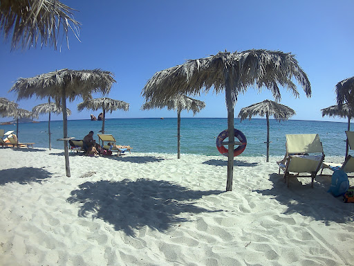 Read moreBellissima spiaggia ampia con sabbia chiara, mare cristallino e fondale basso. I faraglioni rossi a nord della baia fanno da contrasto (sopratutto al tramonto) al colore turchese dell'acqua. Presenti in spiaggia qualche stabilimento con pochi ombrelloni, bar e campeggi subito dietro l'arenile. Ampi parcheggi umo anche ombreggiato e con prezzi moderati rispetti alle altre più famose...
