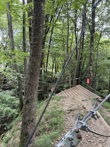 We visited the adventure park on a Saturday afternoon, and the place is fantastic. There is a selection of 8 different routes, which range from a minimum required heights of 110cm up to 155cm. All of them are unique and creative in their own way, and are challenging and interesting for the intended age group. There are obstacles which relate to balancing, tarzan jumps, ziplines, and climbing walls. Furthermore, the place has a bar, where you can get snacks and drinks, and a bathroom. The guides understand English, and are really helpful in terms of understanding the safety mechanisms and how to pass the obstacles. Altogether, the park is great, with helpful staff, impressive infrastructure, and creative obstacles. Best to of all, it is all built within actual forest, further enhancing the experience; a great place to visit...