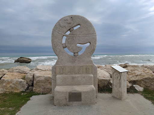Grottammare is crossed by the 43° parallel north (43º parallelo nord), and south of here the climate is Mediterranean. The landmark is well signposted, but the path from the main road to it is unfortunately not. We could barely find the small tunnel under the railway tracks, through which we could reach the promenade with the statues. The tunnel is very low and you can only go through it by bending down. One of us hit his head hard and injured his arm from the fall. On the way back we went through another small tunnel, which also requires caution. The sea is rocky, beautiful and clear. There is a small bar where the cappuccino is unbelievably delicious!!! (There is also a toilet, you have to ask the barman...
