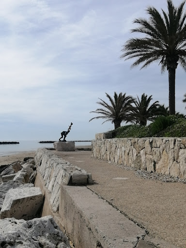 Si tratta di una delle sei copie in bronzo (una anche Roma a Palazzo Merulana, visibile persino dalla strada!) dell'opera originale in legno di Pericle Fazzini, grande scultore del 900, che ebbe i natali proprio a Grottammare. In posizione molto suggestiva, sul lungomare, proprio all'inizio della bella ciclopedonale che collega i paesi di Grottammare e Cupra Marittima. Molto bella e originale per il suo dinamismo, soprattutto nelle ore del tramonto o del primo mattino quando si staglia sui colori del mare e del cielo. Peccato che spesso qualcuno ami riposarsi sul suo basamento o addirittura ci poggi...