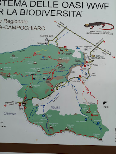Gole del Torrente del Quirino: Queste gole formano una stretta e profonda incisione tra il centro abitato di Guardiaregia e le alture circostanti. Lungo il sentiero, si possono ammirare due grotte carsiche, Pozzo della Neve e Cul di Bove, che rientrano tra le più profonde d'Europa con i loro circa 1000 metri negativi.
