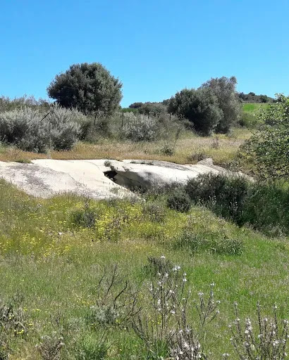 Read moreNel territorio di Guasila in località Riu Sa Mela o Santu Anni, in una domenica di maggio, raggiungiamo la Domus de Janas scavata in un banco di roccia arenaria. La tomba è posta lungo la strada, in un terreno privato, raggiungibile oltrepassando la reticella. La cella della domus si suddivide in tre parti, una centrale posta subito dopo l'ingresso della tomba, e due laterali rialzate. Sorreggono la volta due pilastri ancora integri, entrambi recano un bassorilievo che riproduce la protome taurina. La domus é molto bella, suggestiva ma é anche un momunento molto fragile che reca evidenti segni di infiltrazione e ristagni dell'acqua piovana. Sarebbe quantomeno stato bello trovare un cartello turistico che segnalasse la presenza del monumento e ne illustrasse in poche righe la sua storia...