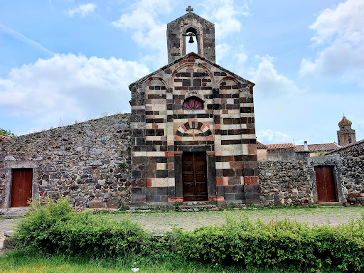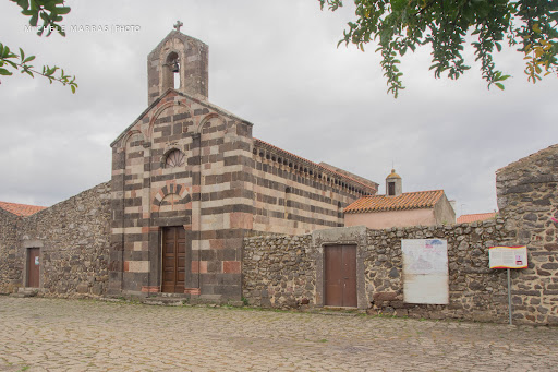 Read moreLa chiesa di S. Palmerio prospetta su uno spazio verde ai margini dell’abitato di Ghilarza, poco distante dalla chiesa di S. Giorgio, già parrocchiale. “Sanctu Paraminu de Gilarce” è menzionato nel “Condaghe di S. Maria di Bonarcado” come luogo in cui si teneva corona (udienza) per dirimere controversie locali. Non abbiamo fonti sulla fabbrica romanica, ascrivibile a maestranze attive in Arborea nel primo quarto del XIII secolo. L’edificio risulta dall’innesto di corpi seicenteschi (transetto e presbiterio quadrangolare) all’aula romanica mononavata, con tetto ligneo e campanile a vela nella facciata a nordovest (m 6,96). Il paramento murario, in conci di media pezzatura, è bicromo per l’alternanza di filari in trachite rosa e bruna. Lo zoccolo a scarpa sviluppa larghe paraste d’angolo e, nella facciata, le due lesene che si raccordano con arcatelle sgusciate. Nello specchio mediano si aprono una luce cruciforme e il portale architravato, con stretti capitelli e arco di scarico rialzato di un concio. Dei fianchi è in vista quello meridionale, con monofora a doppio strombo e archetti a doppia ghiera sottile, su robusti peducci. Alcuni archetti hanno la ghiera esterna archiacuta; in una delle lunette si rileva una mezza figura antropomorfa nell’atteggiamento dell’orante. Nel frontone absidale gli archetti sono paralleli agli spioventi e simili a quelli dei fianchi....