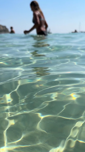 A tiny beach of sand very close to the harbour, most of it is covered in parasols and loungers that have to be paid for, around 15 euros a pair. There is a free area where the majority go so its extremely tight for space. The sea is beautifully clear and there are many fish close to shore, fairly shallow and great for floating and relaxing. As its really the only beach with sand its worth going to as the rest are either private hotel beaches or just rocks with loungers on. Drinks in the shops/cafes in the immediate area are pretty expensive when compared to the San Domino village shops (3 euros...