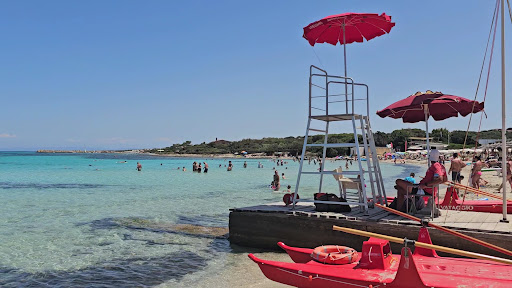 Spaggia del Gabbiano is a beach with fine sand and water, but not as strict rules as at La Palosa. Not much seaweed, at least not in early July. It wasn’t very windy when we were there, and the sun was out, creating beautiful blue water. Easy to walk into the water from the sand, although there were some visible rocks in certain places. I believe the experience can vary greatly with weather. There are good sun loungers and umbrellas, and also the option to buy food and beverages. Toilets are available and there are possibilities to rent SUP,...