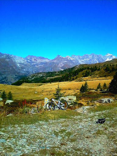 Read moreSpettacolare anello in mtb... da montjovet salita asfaltata fino a la magdeleine.... svolta a destra verso Artaz... la strada diventa poi sterrata e si arriva al lago di Croux.... qui breve tratto su sentiero e ci si collega alla poderale che presa a destra porta ai bellissimi laghi di champlong ed al relativo colle a poco più di 2300 metri di altitudine.... da qui bellissima discesa fino a chamois.... e poi a sinistra per tornare alla magdeleine dove si ritrova l'asfalto e si ridiscende a montjovet.... poco più 70 km con ciclabilita pressoché...