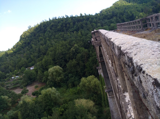 Read moreFacente parte della linea a scartamento ridotto delle Ferrovie calabro lucane Lagonegro - Castrovillari - Spezzano Albanese, il ponte è stato costruito all'inizio del novecento ed è stato completato intorno agli anni '30. Il ponte era dotato di cremagliera, essendo la pendenza al dieci per mille (la potete notare semplicemente passeggiandoci). La zona ha un territorio soggetto a fenomeni di bradisismo, e all'inizio del 1950 i due monti che fanno da estremi al ponte hanno iniziato a spingersi l'uno verso l'altro, causando la rottura del ponte. A nulla sono valsero i tentativi messi in atto per salvare il salvabile, il ponte venne chiuso e la ferrovia limitata a Rivello, espletando le corse fino a Lagonegro con le autocorriere. Ad oggi il ponte non è raggiungibile dalla stazione di Lagonegro, essendo la galleria chiusa. È pericolante, ragion per cui fate molta attenzione se volete salirci sopra, anche perché fa una certa...