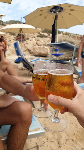 A favorite of Italian customers returning year after year. They know how to navigate to the place and reserve their spots. Upon arrival getting information out of the manager, a rather salty man in nature, was like pulling teeth for us newcomers, never everything that was asked, one little piece of information at a time, but in a friendly manner, always with a smile. However, a couple of hours later, the rest of the staff arrived and completely changed the atmosphere to a wonderful jewel of a place bringing it to life. They were delightful, and I can see why so many customers want to return. A small beach with a limited amount of umbrellas and sun beds. Not much sand here, mostly rocks. Not handicap friendly with a very steep grade with loose gravel. Very much crowded! If you plan to come here, you need to reserve/order everything (except drinks) from the place to lay in the sun, umbrella, sun bed(s) and food - at least a day in advance for the sun beds and umbrellas. The food was quite good and fresh, served from a simple food trailer. Plus, they gave us free stuff to just try on the house. Very generous! Very little to no English spoken for only English speaking customers. Lovely little place. Credit cards are not accepted here, and I did not see a bathroom...