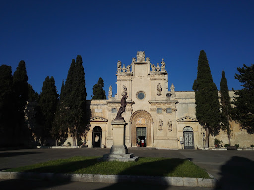 Read moreInserita nel cimitero monumentale di lecce, fuori le mura, corpo unico con uno dei 2 chiostri dell'ex convento degli olivetani (attualmente convento e chiostro sono affidati all'Università di lecce). MESCOLANZA di stili, edificata nel 1180 da Tancredi d'altavilla principe di lecce e poi re del regno di sicilia, Normanno, con maestranze BIZANTINE, in stile ROMANICO con influssi ORIENTALEGGIANTI, successivamente rifatta in gran parte in stile barocco(1500-1600) ad opera di GIUSEPPE CINO con maestranze del luogo e napoletane! Bella la cupola in chiaro stile orientale attualmente nascosta dalla facciata e dai pini del cimitero. All'interno croce latina contratta e altezza diversa delle volte a botte tra navate laterali e navata centrale con archi a sesto acuto che ricordano la cattedrale di Palermo. Immagini "pagane" di sirene a seno nudo sulle 2 bellissime acque santiere del Riccardi. Si possono ammirare sculture del RICCARDI leccese, autore di molte cose nella chiesa di Santa Croce e dipinti di G.BATTISTA LAMA,napoletano. Nascosto nella stanza dedicata al parroco un meraviglioso FONTE BATTESIMALE ancora colorato in rosa con i colori vegetali in uso all'epoca. Nel chiostro presente un meraviglioso pozzo a baldacchino con colonne tortili. Andrebbe curata, restaurata, tenuta meglio. Di proprietà del comune viene tenuta aperta al pubblico 3 volte alla settimana (lunedì, giovedì e sabato mattina ore 9,30-12,30) da...