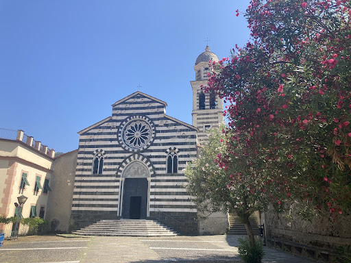 Iniziata nel 1222, venne consacrata nel 1463. L’edificio venne in seguito ampliato con l’aggiunta di due navate laterali. La facciata, in fasce di marmo bianco di Carrara e serpentino locale, alternate, è conclusa alla sommità da una serie di archetti pensili ad arco acuto, alla base dei quali si trovano elementi apotropaici e zoomorfi, retaggio di culti pagani all’interno si riconosce l impianto originario della navata centrale con volta a crociera e pilastri in serpentino locale. Il crocefisso ligneo posto all’ingresso, risalente al XV sec, è soggetto di venerazione da parte dei levantesi poiché legato alla tradizione popolare che lo vuole ritrovata sulla spiaggia occidentale chiamata per questo...