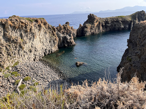 Read moreBellissima spiaggia di sabbia color marrone scuro... unica nel suo genere. L'ho raggiunta dal porto utilizzando i taxi elettrici a prezzi onesti. Presente un bar con possibilità di noleggio lettini e ombrelloni.Proseguendo sulla spiaggia è possibile incamminarsi in un sentiero, pavimentato con pietra vulcanica, che permette di raggiungere il villaggio preistorico e panorami mozzafiato.... Se raggiungete Panarea la visita a questa spiaggia è obbligatoria....