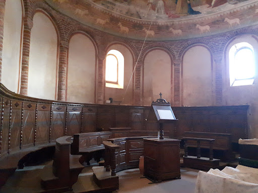 Read moreRisale all'XI secolo e fu probabilmente costruita sui resti di un edificio precedente ( probabile luogo del matrimonio tra regina Teodolinda ed il Duca di Torino, Agilulfo ). È una delle più antiche chiese in Italia in stile preromanico, riconoscibile dal suo soffitto con volte a crociera e dalla sua particolare cripta. La facciata era allineata con le mura del borgo ed il campanile era effettivamente una delle torri della cinta muraria. Una leggenda, vuole che sia stata prima distrutta e poi ricostruita dal diavolo in una notte, ma, per il sopraggiungere del giorno sia rimasta incompiuta ( in realtà la parte senza tetto, è in queste condizioni a causa di un terremoto...). L'interno è in stile barocco. È visitabile con guida, da aprile ad ottobre, di sabato, domenica e...