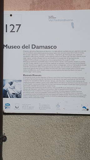 Lorsica e" un comune sparso di 394 abitanti in provincia di Genova ..Lorsica insieme alle sue frazioni e arroccato nella Valle del Torrente Tirello e sotto l'imponente monte Ramaceto , che si collega alla Val D'Aveto . Questa piccola cittadina e nota per la lavorazione delle stoffe di seta dei Damaschi e delle diverse specie di manifatture tessili , che sono qui ancora attive ..fin dal XVI secolo , questo paese sorge su un Poggio a 1345 mt di altezza ed e" cosi" difeso dalle intemperie ed ha un'ottimo clima , il paese sembra quasi un borgo perche" le sue case sono attaccate una all'altra , e lo circondano partendo dalla parte destra per finire alla parte sinistra dove si trova la Parrocchiale di Santa Maria Annunciata . E dove troviamo il bellissimo Museo del Damasco , dove si trovano tele d'oro e d'argento , rasi e stoffe di seta , ..i classici disegni della palma , della rosa , e del prezzemolo , e i pregiati Lampassi dell'epoca Napoleonica , con piu" di 300 disegni che si sono tramandati di famiglia in famiglia . E aperto tutti i Sabati e le Domeniche ..dalle 16.00...