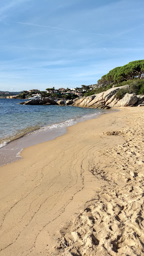 Read moreLa spiaggia è molto piccola ci si accede da due punti attraverso un piccolo sentiero ben lastricato. Lo spazio riservato ai bagnanti è delimitato dalle boe, poco oltre ci sono le barche ormeggiate. L'acqua è bassa, mediamente limpida, (ovviamente se c'è la corrente sbagliata porta rifiuti), ci sono alghe da sempre. Di giorno é tutta esposta al sole, d'estate alla sera inizia ad arrivare l'ombra che gradualmente copre tutta la spiaggia. Sopra c'è un piccolo parcheggio in corrispondenza dei campi da tennis, se è pieno c'è parcheggio verso il molo... Ma se è tutto pieno lasciate perdere, probabilmente non troverete spazio nemmeno per appoggiare il telo. Da quest'anno hanno installato un bagno chimico prima della discesa; sulla spiaggia sarebbero vietati i cani ma spesso capita che vengano portati comunque; sulla spiaggia ci sono piccoli barattolini per i fumatori. C'é un sentiero che collega la spiaggia e il molo da sopra le rocce offrendo scorci molto suggestivi. Onestamente è comoda se si è nelle vicinanze altrimenti la zona offre spiagge più...