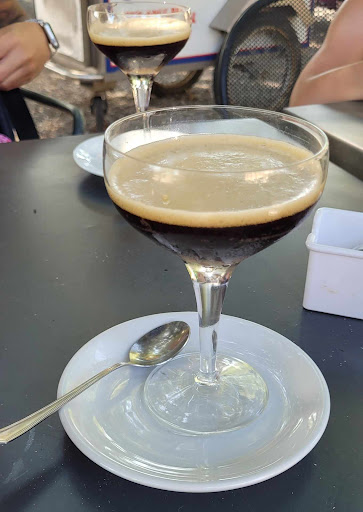 The same waitress seemed fascinated by our two dogs and she made sure that they had water to drink. We paid 30€ for the four of us and we were really grateful for this place to just sit and relax out of the glare of the sun.