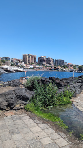 Lungomare di Ognina, is a popular seafront area in Catania, Sicily, known for its volcanic cliffs, beautiful views, and lively atmosphere, offering opportunities for walking, jogging, and enjoying the sea. It is Situated along the coastline of Catania, in the area of Ognina, known for its volcanic cliffs and rock formations. A popular spot for locals and tourists alike, offering a lively atmosphere with cafes, restaurants, and vendors.It could be a lovely front walk place, but it has a lot of obstacles.Even just walking around is very enjoyable.The dark rocks and the sea look really beautiful. There are spaces equipped for gymnasium, spaces equipped for children and families. A wonderful cycle path and a pedestrian path.there is also a new fenced gym. If you go in the afternoon you could enjoy a good aperitif...