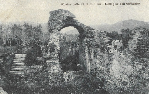 Con la sua nave Aron scendeva lungo la costa, il mare cantava dentro le grotte, insenature spendenti come conchiglie si succedevano in quel promontorio ammantato di verde che si calava a precipizio nell’acqua. Il mare era lucente come le spade dei suoi quarantotto guerrieri, oltrepassata la candida scogliera bianca la drakkar entrò nell’insenatura verdastra della Magra. La luna in cielo era una perla e la sua luce faceva risplendere le montagne bianche, poderose che si stagliavano irte verso il cielo. Da sopra la prua la sentinella scorse le mura della splendida città di Luni dedicata alle dea Luna, poi scese velocemente e si precipitò a riferire dell’avvistamento ad Aron che ritto sulla poppa ordinò subito di ammainare la vela e ai rematori di prendere posizione. I colpi precisi e ritmati delle pagaiate facevano scivolare la nave silenziosamente in quell’acqua ora bluastra come il petrolio. Il capitano fece segno di rallentare e di accostare la nave nell’ansa destra e di ormeggiare con le gomene la drakkar. Chiamò a se cinque dei suoi uomini migliori e scesero a terra per studiare l’assalto. In quel terreno morbido e paludoso le loro calzature di cuoio affondavano fino alle ginocchia rendendo faticoso l’ avanzamento, a carponi riuscirono ad arrivare a ridosso di grossi pioppi, e da li in mezzo alla pianura videro la splendida città che si affacciava sulla Seccagna. Navi romane erano a protezione del porto, mentre l’entrata principale subito dietro era sorvegliata a vista da molte guardie. Alte mura la circondavano alle spalle come un mantello di volpe, la luna faceva risplendere l’anfiteatro, il foro con le statue e le colonne, il teatro e le domus.