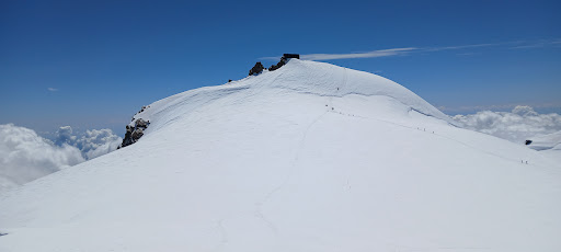 Read moreIl meglio dei nostri monti! Manco da molti anni solo per non aver combinato, e da solo incapace di decidermi.... ma prima andavo spesso da solo, carico di fotocamere ed obiettivi. Foto solo analogiche, cioè diapositive in fondo ai cassetti, dovrei recuperare... se lo farò aggiungerò qualche immagine. La vista... è inutile dire che è unica e super, si può immaginare! E se la giornata è limpida, tutto il quadro diventa ineguagliabile a 360 gradi. Ci sono salito una decina di volte, due con parapendio e disceso con le pive nel sacco (=a piedi) per troppo vento, decollando poi da Indren o dal col d'Olen. Già, il vento! È una condizione quasi costante, non si può sperare di andar su come in un prato a mille metri a fare il picnic al sole. Raramente di bassa intensità, talvolta a raffiche fino a 20 m/s. Occorre aspettarselo e queste quote esigono la sopportazione di vento e freddo, che fanno parte del gioco, ma in luglio e agosto ci salgono anche le famiglie, specie se dopo un giorno di acclimatamento alla Gnifetti, per es. Pochi crepacci, visibili e piccoli, la pista, anzi il pistone (ben segnato dalle moltitudini di escursionisti) passa sempre per i punti sicuri, aggirando le crepe. Mai fatta in cordata, basta passare nei punti giusti anche facendo qualche passo in più. La cordata è una sicurezza, ma bisogna saperla fare correttamente, ho visto cordate con gente legata ogni tre metri, no grazie.