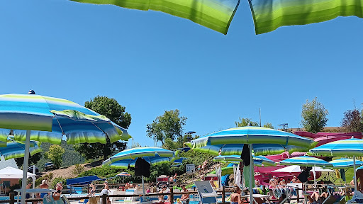 Als eerst: ruim €60,- om met 4 man naar deze zwembad te gaan. Mijn dochter ging niet zwemmen maar toch volle pond betalen voor toegang. Met 3 bedden en 3 badmutsen echt een stevige prijs. Maar met 40 graden wil je graag wat verkoeling met je gezin we hebben er wel van genoten. Vooral de glijbanen waren in trek: de roze waar je met een opblaasbare bootje in moet vond mijn zoon van 10 geweldig. De blauwe en groene waren hele snelle glijbanen. En de brede blauwe was ook wel leuk. Maar bij de brede blauwe kwam ik met met rug tegen de bodem aan. Dat was minder leuk. Qua eten lekkere broodjes, vooral de piadina met ham en kaas was top. Broodje kipburger was ook goed. Drinken hadden er zelf meegenomen. Ik was vergeten zwemschoenen mee te nemen en dat heb ik geweten: welke sadist verzint het om grind tegels te gebruiken bij een zwembad??? Mijn voeten deden zo pijn dat lopen echt niet ging. Stel je voor om zo naar boven te lopen voor de glijbanen. Echt een hel. Wat ook een hel is: het rooster in de wc. Echt zo pijnlijk. Vergeet dus niet zwemschoenen of slippers mee te nemen. En ook je badmuts want €4.- betalen voor een verplichte badmuts is erg duur. Personeel was wel continue Allert en...