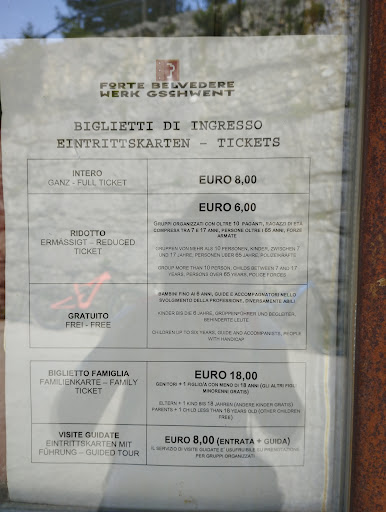 Read moreForte Belvedere è una fortificazione austroungarica risalente alla prima guerra mondiale si raggiunge facilmente dalla nota località turistica di Lavarone. La strada è bella,panoramica ben segnalata e giunti a destinazione c'è un bel parcheggio. Da lì per andare al Forte si prosegue a piedi un po'in mezzo al bosco e per il resto all'aperto ammirando un bellissimo panorama, arrivati al forte già si vede l'imponente struttura ben conservata poi si entra i piani sono due e uno sotterraneo li sotto fa un po' fresco e parecchio umido anche d'estate è bene vestirsi, poi si incomincia a girare per il percorso programmato dalla direzione tra lunghissimi corridoi e le tante stanze che in origine erano adibite ai consueti usi logistici di caserma dei soldati ed anche e soprattutto con le tante postazioni di difesa il tutto ben descritto e segnalato con cartelli e targhe che spiegano bene i tanti locali della visita. Il forte fa anche da museo ed è veramente un bel museo ricco di reperti di tutti i tipi ed è molto interessante vedere queste cose lì esposte e catalogate per la loro storia si va dalle armi, all'abbigliamento invernale specie visto il clima rigido di montagna, all'oggettistica fatta dai soldati, le divise storiche molto belle con i copricapo vari tipi di elmetti e tanta svariata oggettistica di uso interno al forte e tanto altro ancora. Per una maggiore informazione in qualche locale si riproduce un video multimediale che spiega molto bene la storia di Forte Belvedere, volendo c'è anche un'ascensore per salire ai piani o sennò le scale. Interessante è anche il giro che si fa dentro le postazioni per cannoni una registrazione sonora fa sentire le urla in tedesco dei comandi per aprire il fuoco col cannone e il flagoroso scoppio è molto suggestivo direi sembra di tornare indietro nel tempo a quei terribili momenti vissuti dai poveri soldati. La lunga visita poi prosegue all'esterno girando tra le cupole dei cannoni ancora presenti che escono dal terreno camminando sopra il tetto della casamatta il grande fossato che divide la struttura da un'altra e tutta la fortificazione lì ancora intatta da notare lì fuori si vede bene la posizione strategica del forte che controllava molto bene tutta la Val d'Astico e tutte le belle montagne li intorno veramente un bel posto di veduta unico nel suo genere per dominare ed impedire all'esercito Italiano di avanzare, certamente speriamo che questi posti restino solo un ricordo storico del nostro passato perché non succeda mai più. Per finire c'è un bar le toilette ed uno shop souvenir per portarsi a casa qualche bel ricordo di storia molto vera di questa zona, soprattutto qualche bel libro che racconta molto bene tutta la storia e gli avvenimenti accaduti qui. Il Forte Belvedere merita di essere visto è un museo molto importante sia dentro che fuori ed una storia vera tutti ne sono interessati ho visto ed anche i bambini si divertono molto, una gita o una vacanza turistica e culturale da fare per tutti da non perdere assolutamente....