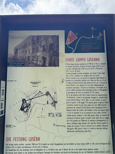Read moreForte austriaco (1 dei 7 sulla linea difensiva austriaca, fino al maggio 1916) costruito nel periodo 1908-1912 e ampiamente impiegato durante la I guerra mondiale. Si tratta del più grande di tutti ospitava più di 300 persone. Recentemente coperto e reso accessibile in sicurezza può essere visitato all'interno pagando un biglietto di 4€ per gli adulti e 2€ per i bambini. La passeggiata per raggiungerlo parte da Luserna e si sviluppa lungo il sentiero 2 (sentiero della Grande Guerra). La passeggiata è molto bella e non impegnativa e il Forte, così come l'avanposto Oberwieser (situato a 10 minuti a piedi in direzione della Malga Campo Forte sempre lungo il sentiero 2) vale...