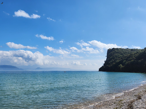 Read moreVery beautiful beach surrounded by a huge rock from the one side and an island from another. It's actually a narrow band going along the lake. Water shoes are highly recommended. There is also a point to rent a paddle boat (12 Euro per hour). Several parkings around...