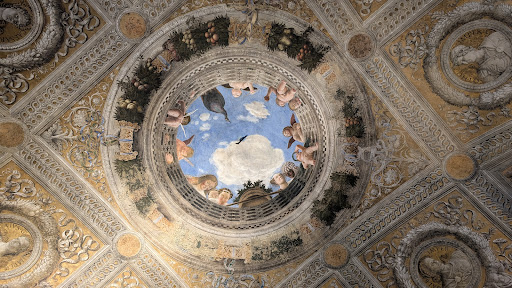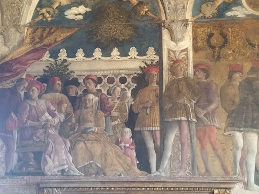 Read moreLa sala, capolavoro di Mantegna, è il più prezioso dei gioielli dello straordinario Palazzo Ducale di Mantova. La pianta è approssimativamente quadrata, con lati di ca. 8 metri, a cui gli affreschi donano più ampie spazialità simulando aperture verso l'esterno. Mantegna ci lavorò per una decina d'anni, tra il 1465 e il 1474, lasciando immagini della vita della corte, con episodi sulla cui collocazione permangono dubbi, e un suo piccolo autoritratto tra i motivi floreali di una finta...