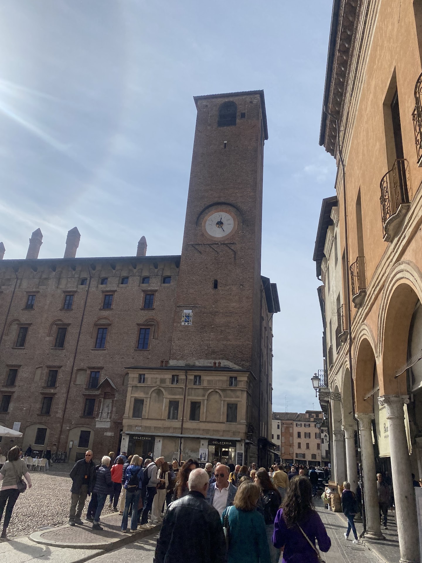 • La Rotonda di San Lorenzo, una chiesa costruita nel XI secolo, il più antico edificio sacro della città, che affascina per la sua forma circolare e la struttura in mattoni a vista. • Il Palazzo della Ragione, risalente al XII secolo, con la sua imponente facciata e la Torre dell’Orologio accanto, che risale al XV secolo. Questa torre è un altro simbolo della piazza, dotata di un orologio astronomico che segna le ore, le fasi lunari e le posizioni degli astri. Piazza delle Erbe conserva un’atmosfera autentica, grazie alla presenza di portici medievali, caffè storici e botteghe che la rendono un luogo vivo e pulsante. La piazza ospita anche un vivace mercato, che fin dai tempi antichi ha animato questa zona di Mantova e che ancora oggi riempie le strade di bancarelle colorate e profumi di prodotti tipici. Nonostante la sua importanza storica, Piazza delle Erbe non è solo un monumento a cielo aperto: è uno spazio vissuto dai mantovani e dai turisti. Numerosi bar e ristoranti con tavolini all’aperto permettono di godere della vista e dell’atmosfera rilassata, soprattutto nelle giornate di sole. Chi visita Piazza delle Erbe ne apprezza soprattutto il connubio tra la grandezza artistica e la dimensione quotidiana, che la rende un luogo non solo da vedere, ma da vivere. Le recensioni generalmente elogiano la bellezza del contesto, la ricchezza culturale e la vivacità del luogo. Tuttavia, durante le giornate di mercato o in alta stagione turistica, può risultare affollata, perdendo un po’ di quella calma che la caratterizza in altri momenti.