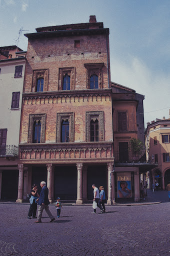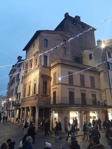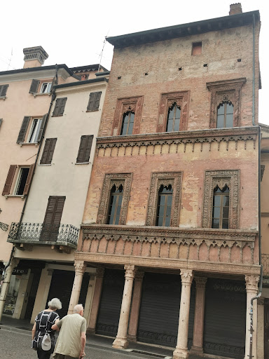 Read moreCasa del Mercante sau Casa di Boniforte da Concorezzo este o clădire istorică din Piazza delle Erbe din Mantua , la colțul pieței Andrea Mantegna...Clădirea a fost comandată de un bogat comerciant de textile din Brianza , Giovanni Boniforte da Concorezzo , care s-a stabilit în oraș în 1455, pe vremea când Mantua era condusă de marchizul de Mantua Ludovico al III-lea. Gonzaga a domnit. Boniforte era, de asemenea, furnizorul lui Gonzaga la curte și se căsătorise cu un anume Bartolomea Gonzaga....clădirea cu trei etaje are o fațadă din teracotă în stil gotic târziu și motive orientale în stil venețian, care a fost apoi decorată cu mici frunze aurite. Parterul este întrerupt de un portic susținut de coloane din marmură roșie de Veronese, pe arhitravele cărora se pot citi următoarele inscripții: HANBONIFORT DA CONCHOREZO AFAT FAR QUESTA OPERA DELANO 1455 - IOHANESBONIFORT DE CONCORESIO HOCIT SUB OPUS FI ANNO DOMINI 1455...în spatele casei se află Torre...