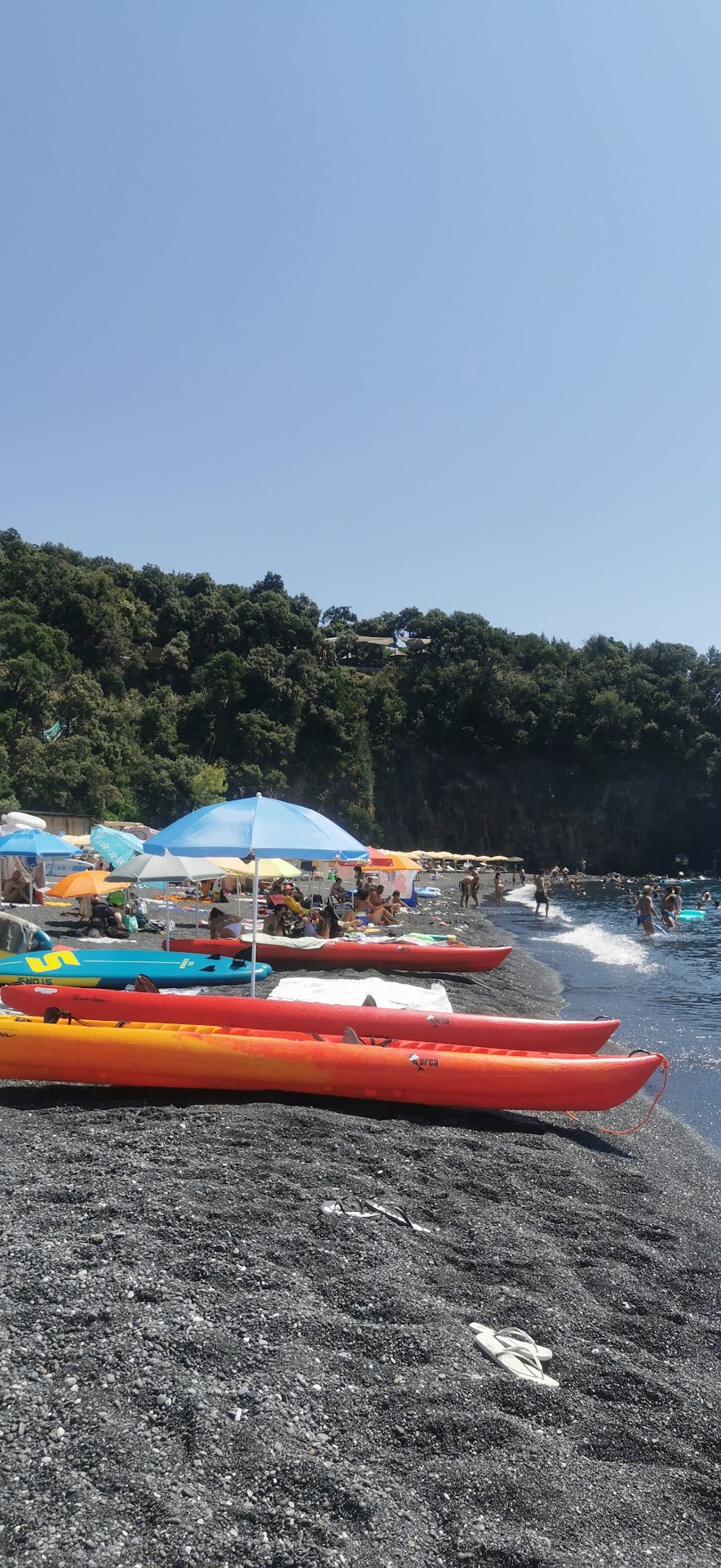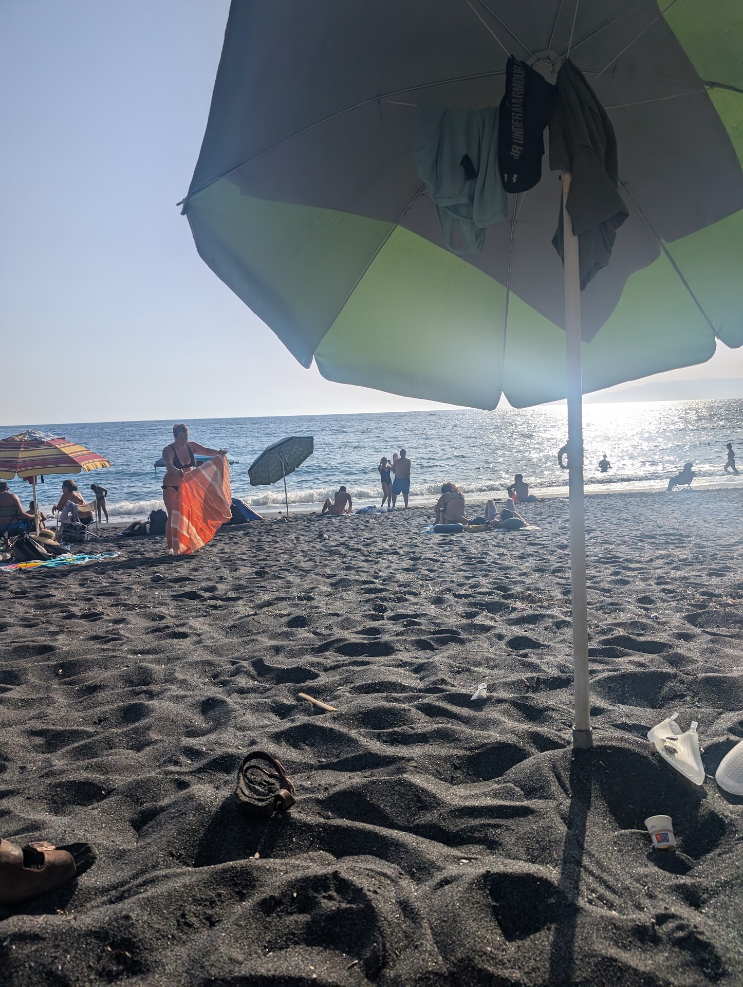 the workers at the Lido Spiaggia Nera and its bar do a great job. you can rent and umbrella and seats there, but you can also go to the "for free" part of the beach (always with your own umbrella; there are no shadowed places here and the sun is relentless).