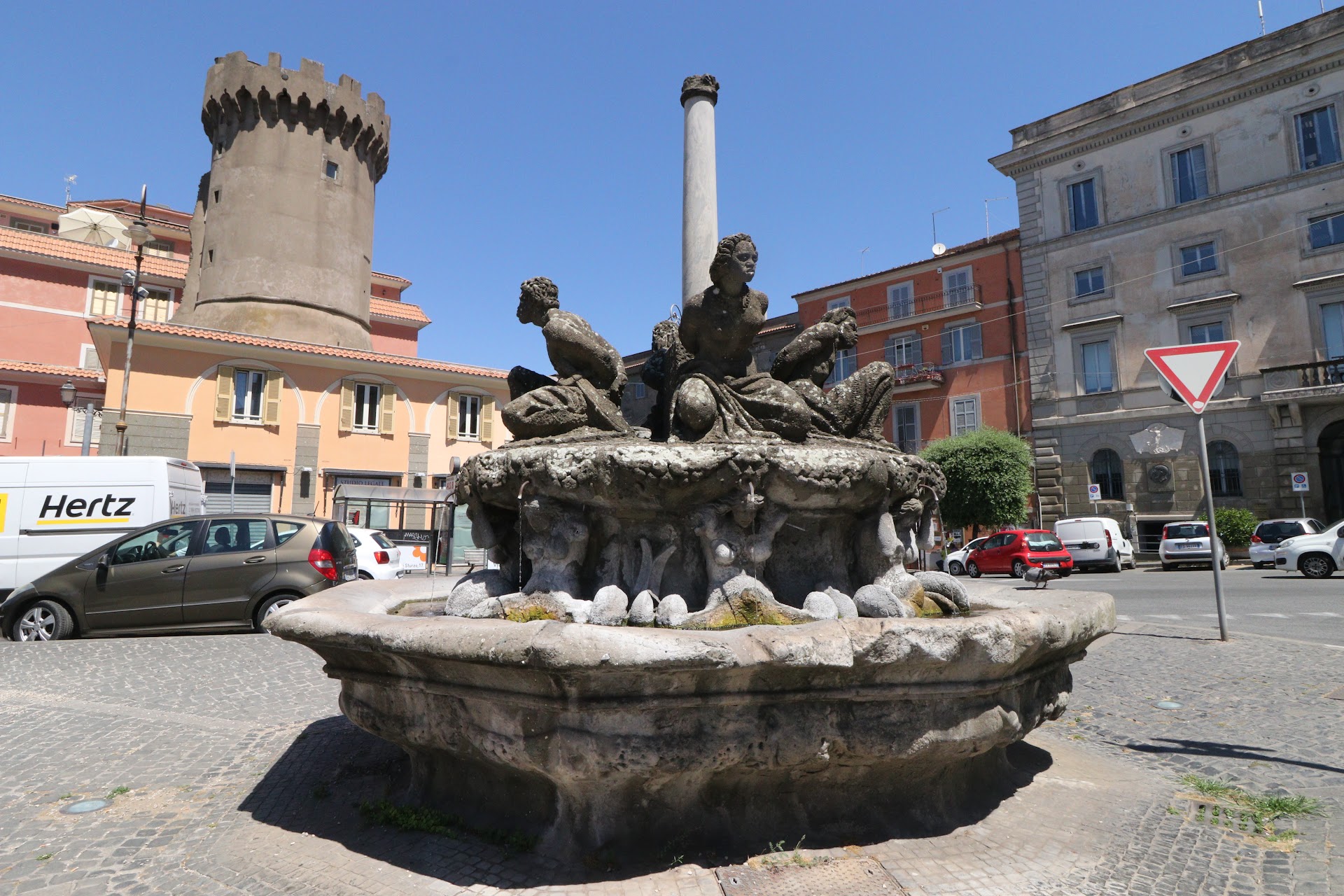 Read morePietra lavica, marmo e peperino sono i materiali di cui è composta questa bella fontana, orgoglio dei marinesi, divenuta simbolo, nell'immaginario collettivo, del sentimento bacchico per eccellenza, durante i giorno della sagra dell'uva. Stupisce che ne sia divenuta ora uno spartitraffico per le automobili e i pullman che l'aggirano senza degnata di uno sguardo. I mori o schiavi che, inginocchiati ed incatenati sul catino superiore, offrono il loro triste sguardo agli sguardi distratti dei viandanti, assumono la loro dignità pur se sconfitti. Opera seicentesca di tal Venturi, fu materialmente realizzata da artigiani scalpellini provetti e valenti. I mori originari sono stati sostituiti da copie realizzate da Marino...