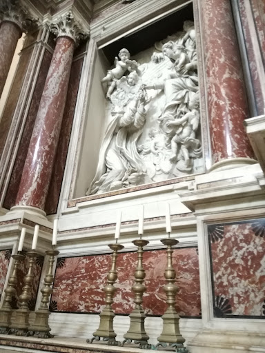 Il carattere gentilizio della chiesa conventuale, evidente fin dalla fondazione nella seconda metà del XV secolo, ribadito dalla sua destinazione a sepolcreto della famiglia, fu confermato dall'impegno profuso dai Cybo per la sua ristrutturazione nel corso del Seicento. Per il tempio, quasi totalmente ricostruito tra il 1660 e il 1670, l'architetto Giovanni Francesco Bergamini e il figlio Alessandro Bergamini progettarono la sistemazione e l'arredo dell'area presbiteriale realizzando un monumentale altare maggiore, concepito come fastosa quinta scenografica al centro del presbiterio, i due altari del transetto, per i quali il Cardinale commissionò attorno al 1684 a Luigi Garzi le due tele con l'Immacolata e con la Trinità in gloria e santi, e il rivestimento marmoreo delle pareti e del pavimento.