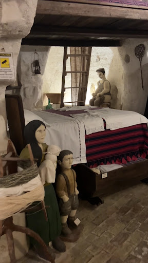 В Матере есть как минимум два музея, которые находятся в каменных домах, где до 1952 г. жили местные жители. Потом их начали переселять в обычные дома и этот процесс растянулся на 20 лет. В этом типичном доме есть три комнаты: кухонная зона, конюшня с ослом и домашними животными, также есть зона спальни с двуспальной кроватью, над которой размещена еще одна кровать, а рядом - люлька с ребенком. За спальней есть небольшое пространство, предназначенное для умывания и туалета. Канализации в те времена не было. Интересно, что домашние животные постоянно жили с хозяевами под одной крышей, потому что снаружи не было места для их содержания. Скульптуры людей размещены внутри дома так, как это было в прошлом, когда каждый член семьи имел небольшое пространство, чтобы заниматься своей домашней работой. Этот музей в гроте создан по инициативе г-на Юстачио Рицци в том доме, где жили его предки. Чувствуется, что семья дорожит своим прошлым. Сыновья г-на Рицци являются умелыми мастерами и они полностью воссоздали семейный быт дома в гроте, причем, не только обставили жилище мебелью, но также изготовили из туфа уникальные скульптуры людей и животных. На это им потребовался год работы. Когда вы заходите в дом, работница музея включает аудиозапись с рассказом об укладе жизни семьи. Есть аудиогид на русском. Все наглядно и понятно. В общем, музей весьма интересный и мне он очень понравился. А в здании напротив есть еще один музей, причем, бесплатный, под названием "Камни Матеры в миниатюре". Он тоже связан с семьей Рицци. Здесь представлены работы из местного камня туфа, выполненные художником Эустахио Рицци. Эти миниатюрые творения необыкновенно красивы, мастер создавал их в течении трех лет. Так что, посетив оба музея, вы не только узнаете историю Сасси, но и получите эстетическое удовольствие. Время посещения...