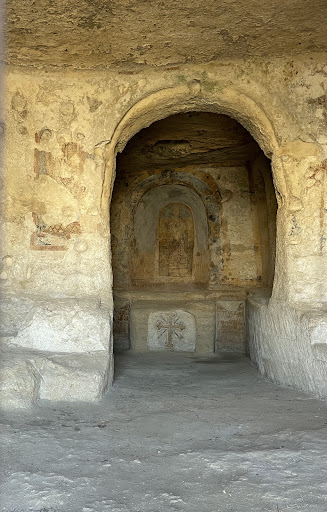 L'atmosfera all'interno della chiesa è magica e pacifica. Le pareti rocciose, i soffitti a volta e gli affreschi medievali creano un ambiente davvero speciale, che trasmette una sensazione di sacralità e mistero.